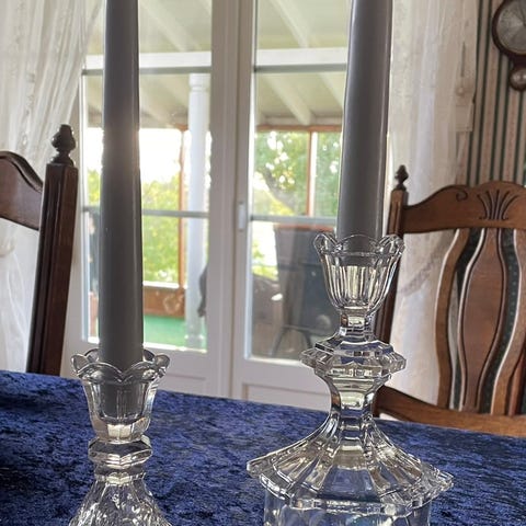 3 lysestaker til vanlige lange lys og en større til kubbelys.