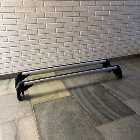 Takstativ/takrails til Volkswagen. Disse har stått på en Polo 2022-modell. Påmontert skiholdere.