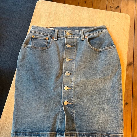 Levi’s Deconstru skirt i orginalstørrelse 16. Oppleves normal i størrelsen for en type 46/48.
