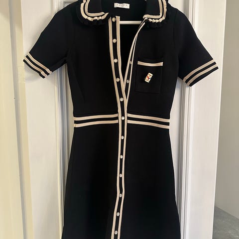 Ribbestrikket kjole med gullknapper fra H&M, størrelsen er xs. Kjolen er ikke blitt brukt , bare prøvd på men lappen er blitt tatt av siden jeg trudde jeg ble å bruke den. Selges fordi den ble for stor og jeg fant meg en annen størrelse.