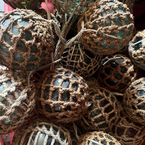 Flotte gamle glasskuler/Garnkuler. Meget flott til dekor i Hagen til vannspeil, dekor på skalldyrbordet, maritim pynt. Kuler i ulike størrelser. Selges 125kr pr stk. 5 stk 500kr. Hentes i Haugesund, eller sendes etter Posten/ Postnord sine satser. Kan også levere ved kjøp av store kvantum/antall.