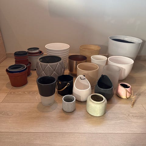 3 nye Toscana firkantete håndlaget blomsterpotter. To Store og en mellomstor. Må Hentes hos selger.