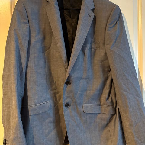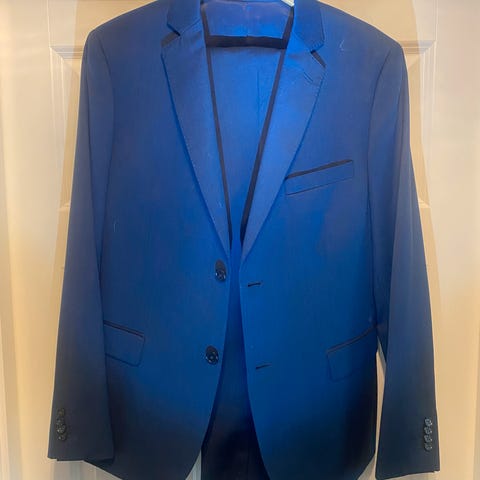 Fin navy/marineblå dress til herre. Både jakke og bukse. Størrelse 50. Kun brukt ved et par tilfeller. Merke: These Glory Days. Kjøpt på Volt.