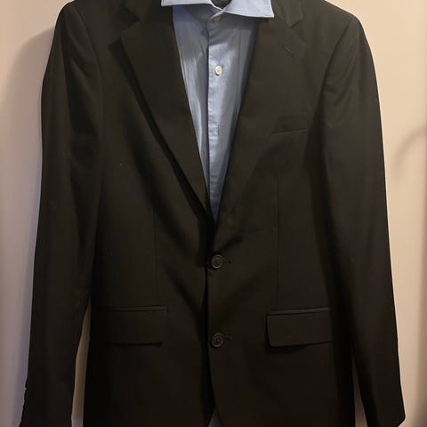 Fin svart dress til herre. Størrelse 48. Det følger med en svart vest. Merke: Riccovero. Nypris 6000kr.