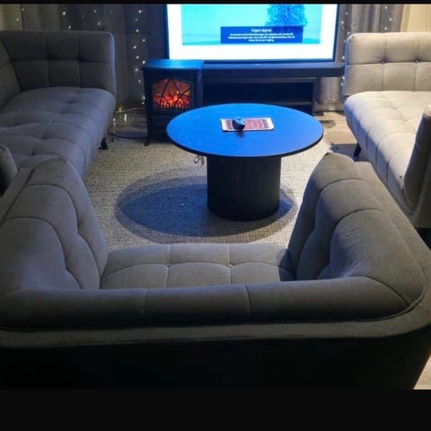 Denne er kjøpt fra trademax. Sofaen er pent brukt og fortsatt i en fin tilstand. Skinnet på sofaen har løsnet litt, mest på tre seteren. Selges samlet. Ta kontakt for mer info.