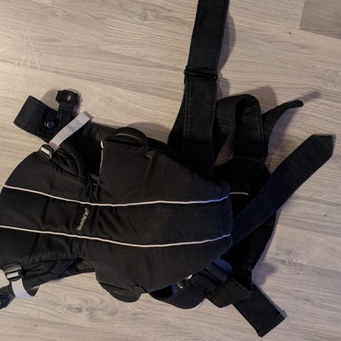 Stokke bæresele som kan feste barn både forran og bak og med spedbarn innlegg.