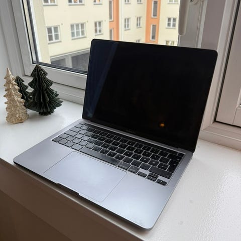 Maskinen fungerer som den skal og har vært jevnlig vedlikeholdt. Den ble levert inn til Eplehuset i 2022 for reinstallasjon av macOS og oppgradering til den nyeste støttede versjonen. Dokumentasjon fra servicen følger med.