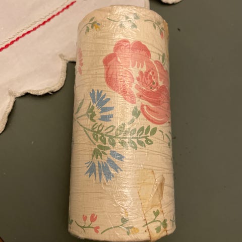 Retro tapet - 1 rull Dahls blå-mønstret tapet , Danmark , uåpnet . Står ikke på hvor mange meter , er noen tall på , se bilde.