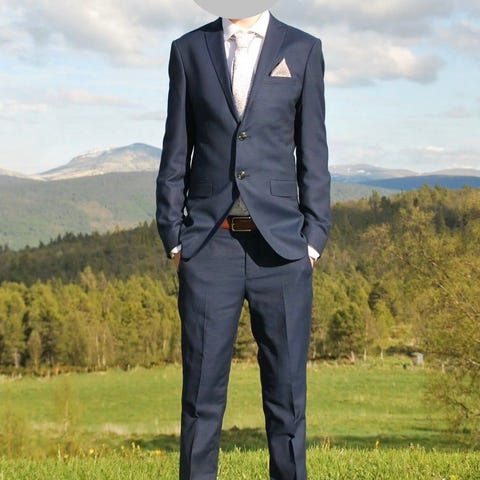 Flott dress i en nydelig blå farge. Brukt 2 ganger. Smal modell, str 44, tilsvarer XS. Se bilder for mer info. Ny pris, 500 pluss frakt.