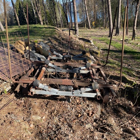 Kraftig opplagshenger. (Opprinnelig laget til transport av stålplater på skipsverft)