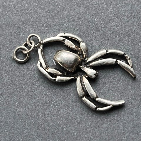 Eldre sølvring med en grønn stein selges kr.400,-.