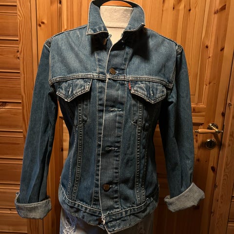 Jakka er en type "2 sort" derfor er levismerket på lomma på brystet klippet bort.
