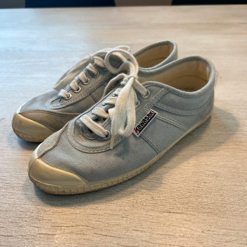 Fra produsenten: «Klassiske Kawasaki. Opprinnelig en badmintonsko, men helt topp til fritidsbruk! Deilig på og tåler det meste. NB! Litt små i størrelsen. Vipper du vanligvis mellom to størrelser så vipp opp.»