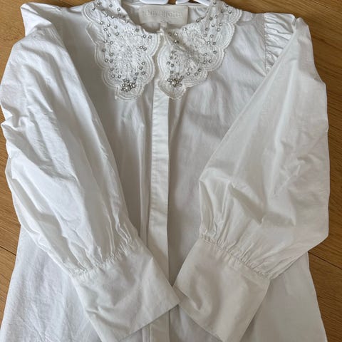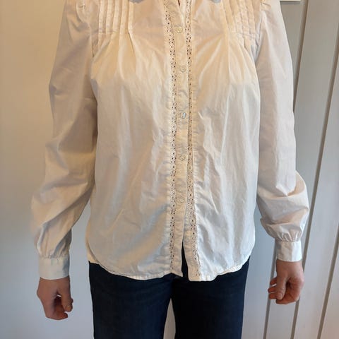 Pia Tjelta nydelig hvit bluse med krage og blonder XS