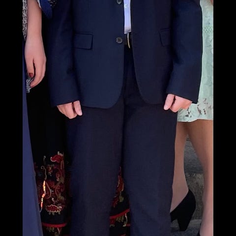 Barn dressjakke i burgunder farge, størrelse 140, designet for gutt. Jakken har en klassisk passform med knappelukking og er laget av et materiale som gir et pent og formelt utseende.