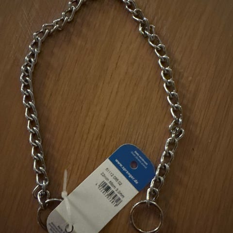 Helt nytt halsbånd med lappen på. Spesialbestilt, ble dessverre feil farge og størrelse.