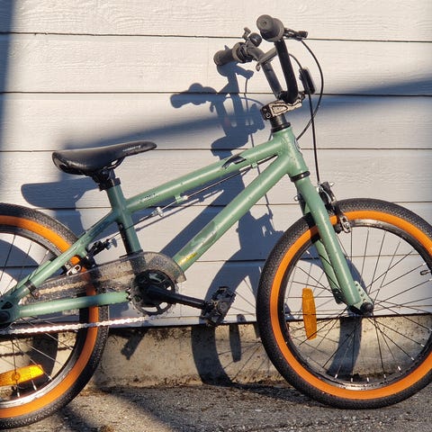 OBS NB, som med andre Biltema-sykler må dekkene pumpes med jevne mellomrom. Det er ikke hull/skader på dekkene.