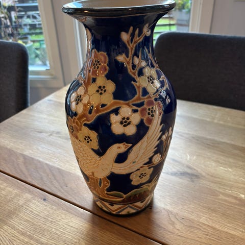 Hvit høy vase. Du får med plastikk pyntene også.