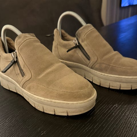 Skoene er pent brukte men har gulnet litt på sålene. Selges derfor billig.