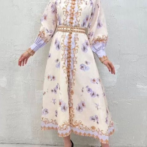 Nydelig langermet kjole med blomsterprint. Dette er den lange midi modellen. Helt ny, aldri brukt.