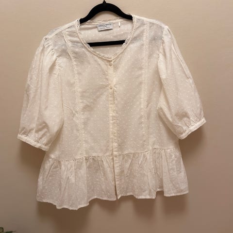 Fin bluse i str. L i gjennomsiktig chiffon.