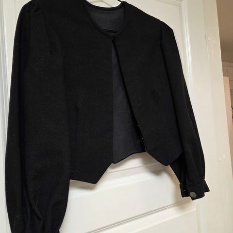 Bunadsjakke i sort fra Husfliden Lillehammer. Meget pen, selges grunnet at den er blitt for liten.