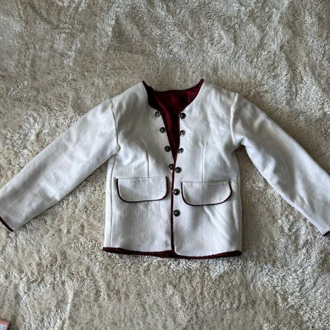Brukt men i god stand, mangler èn knapp på buksen høyre side (skjules av vest og jakke
