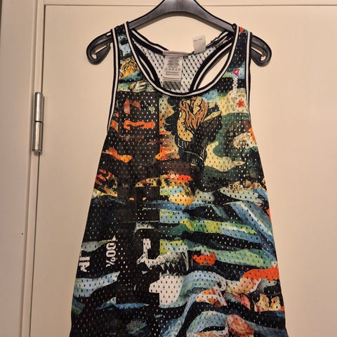 Ubrukt Fila treningskomplekt i vibrant geometrisk mønster.