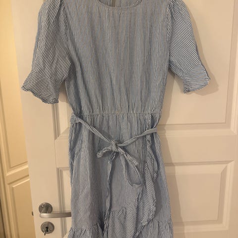 Rosa og hvit blomstrete kjole fra ONLY i str. S. Kappe nederst.