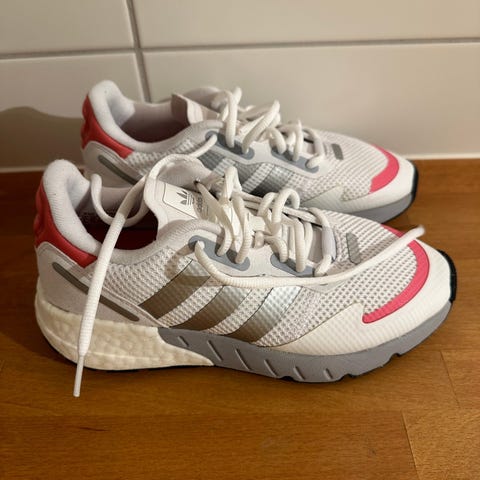 Svarte Adidas joggesko i størrelse 37, pent brukt. Litt møkkete etter bruk, men de kan nok vaskes.