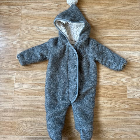 Pent brukt Newbie bamsedress i foret bomull. Fin for vår og høst. Med hette og overtrekk til hender og føtter.