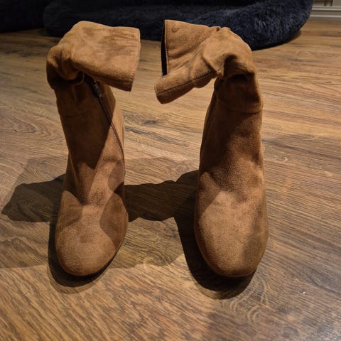 Jeg selger mine GUESS støvletter i fargen lyse grå/beige. Sitter komfortabelt på og sklir ikke ned. Åpen tupp og hæl. Disse skoene har bare blitt lagt bort til en dag som aldri kom. kjøpte disse i New York for ca 2500 kr.