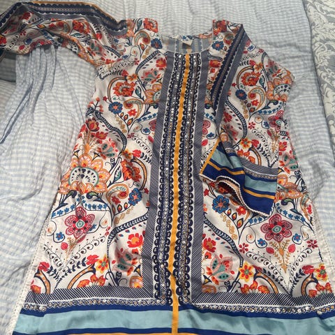 I’m selling a newly purchased blouse that doesn’t fit me. It’s a size 42 and features a beautiful multi-color design.
