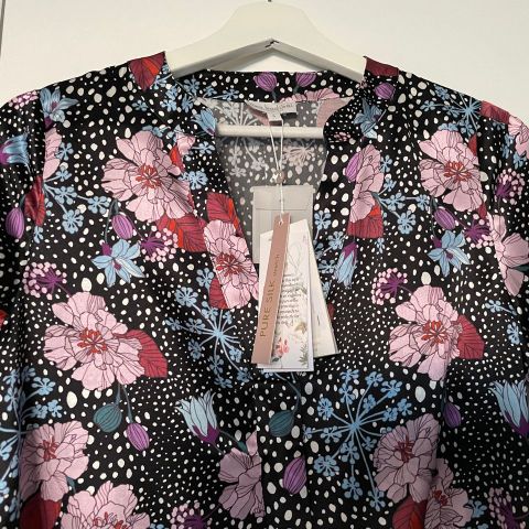 Nydelig silkebluse med jeansblå print fra Dea Kudibal, str S