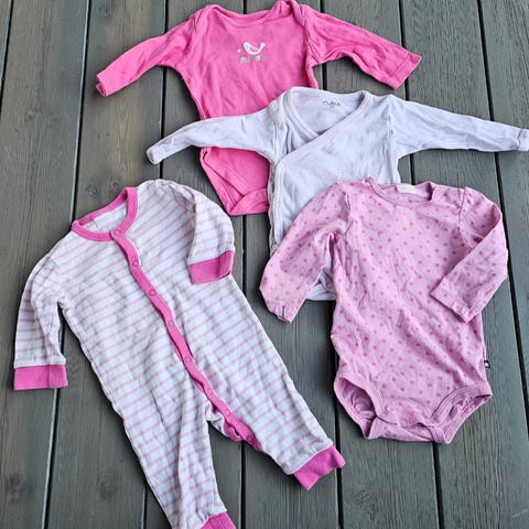 Selger unna en klespakke som min vokser rett forbi, kjøpt det meste nytt unntatt to body og buksen og jakken og det andre er neste ikke brukt.