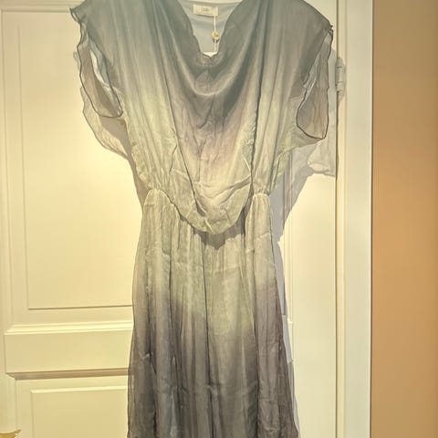 Fin kjole , St M , 91 cm lang , kan brukes både til fest , og til hverdag. Vanskelig å si nøyaktig farge , en blanding av brun og lilla.