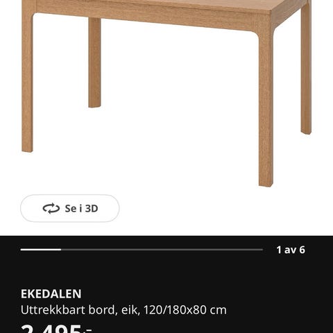 IKEA Eikedalen spisebord i fargen eik, 180/240 cm