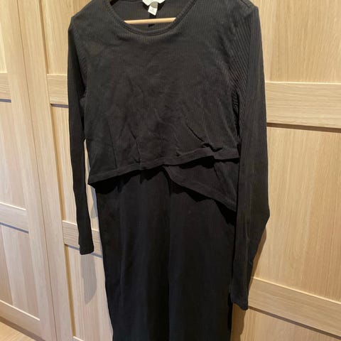 Amme kjole i litt kortere enn kne lengde. Selges da den er litt for kort og derfor ikke blir brukt. Veldig god å amme i, kan også brukes når man ikke ammer lenger. Se siste bilde for mer nøyaktig farge