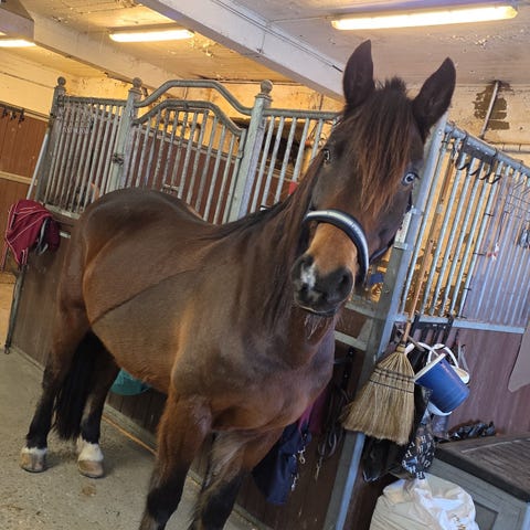 Pila er en kaldblodshoppe på 18 år som søker beiteplass sommer 2026, og gjerne flerårig. Hun er middels på rang, og gjør som regel ikke så mye ut av seg.