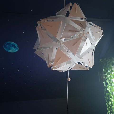 Innerglasset er knust, men lampen fungerer og alle ytterlamellene er hele!
