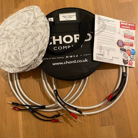 Som Nye - Chord Shawline X Høyttaler kabler 2x3m. En godt konstruert høyttalerkabel - med sølvbelagte ledere og dobbel skjerming. Ny pris på disse hos Soundgarden er kr. 6990,-. Foretrekker lokalt salg - men kan sendes. Ferdig prutet.