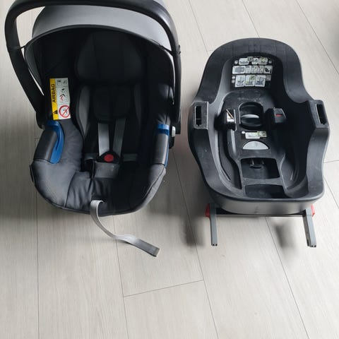 Babysete BeSafe iZi Go Modular til bil, med i-Size base (ISOFIX) og klossen for sidekollisjon.