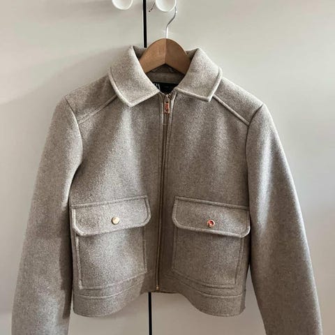 Lys beige Stradivarius jakke/shacket i str. XS. Fremstår som ny da den den nesten ikke er brukt. Det er ingen merker eller flekker på jakken - det er kun lyset/skygge på bildene som kan gjøre at fargen ser noe ujevn ut.