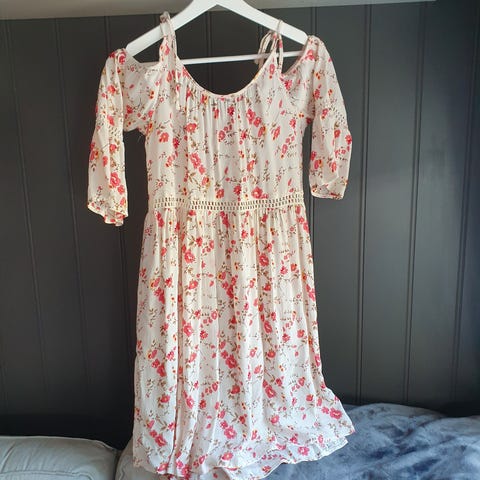 En herlig lett kjole i str 38. Sitter pent på med blonde i livet. Luftig og nydelig på. Brukt kun 2 ganger så vidt det er.