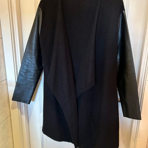 Svart strikkejakke fra KappAhl Xlnt i str XL selges siden jeg har glemt å sende den i retur og den ikke blir brukt. Den er i 60% bomull og 40% polyester