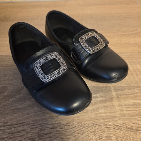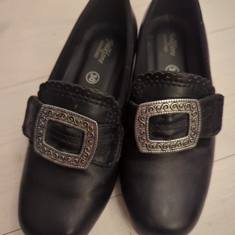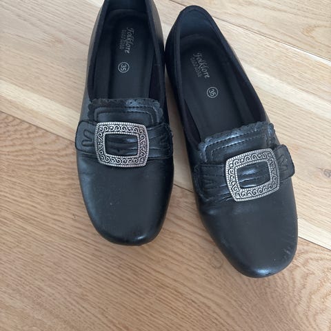 Folklore bunadsko. Liten slitasje i front på venstre sko. Mye sko igjen