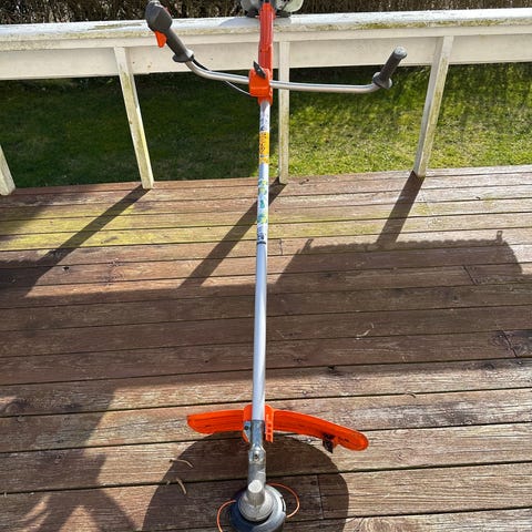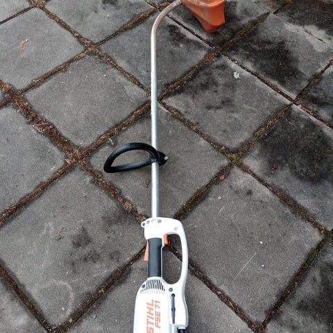 En Stihl gresstrimmer som er brukt fjorårets sesong. Denne er med trå. Jeg ville ikke ha med trå, men de solgte meg feil type. Ønsker nå å bytte mot en med annen løsning. Nypris nå 1500 ca. Kan ikke sendes. Denne brukes med ledning.