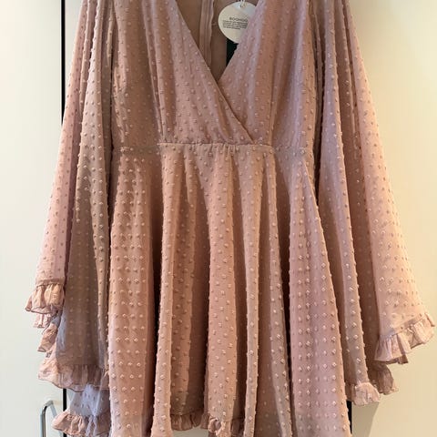 Kjolen har et lett og luftig materiale med prikker og lange ermer👗. Som ny.