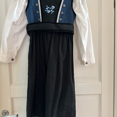 Pent brukt barnebunad inkl. nystrøket skjorte med mansjettknapper på armer og hals.