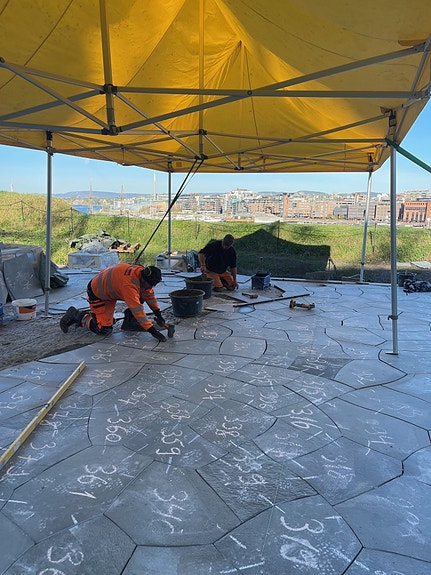 Bruddheller store lagt i subbus og kantet med storgatestein